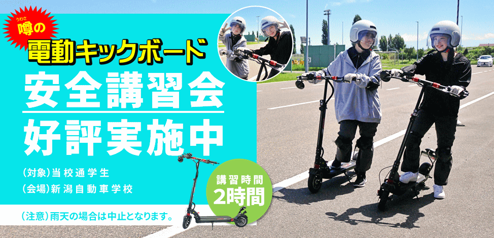電動キックボードは手軽に移動できるモビリティである一方で、社会全体の交通ルールの認知が十分とは言えない状況であり、一部のユーザーの違反走行が社会問題化するなど、現時点では十分に安心・安全な乗り物としての評価が確立されているわけではありません。そこで当校では、皆様に適切に電動キックボードを使用いただけるよう、電動キックボードの正しい交通ルールのレクチャーや安全な走行方法の講習会を実施いたします。