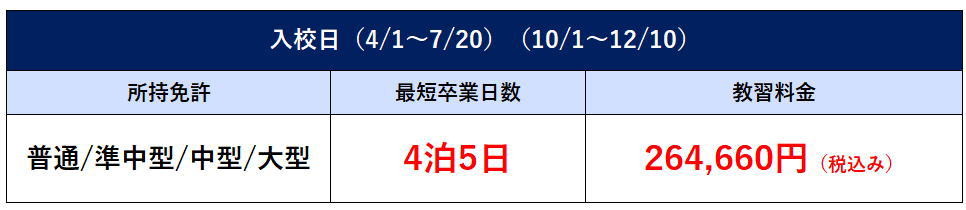 ◎入校日は申込時の車両状況とお客様との日程調整後に決定します。※定員に達している場合は、入校日が変更になることがあります。
